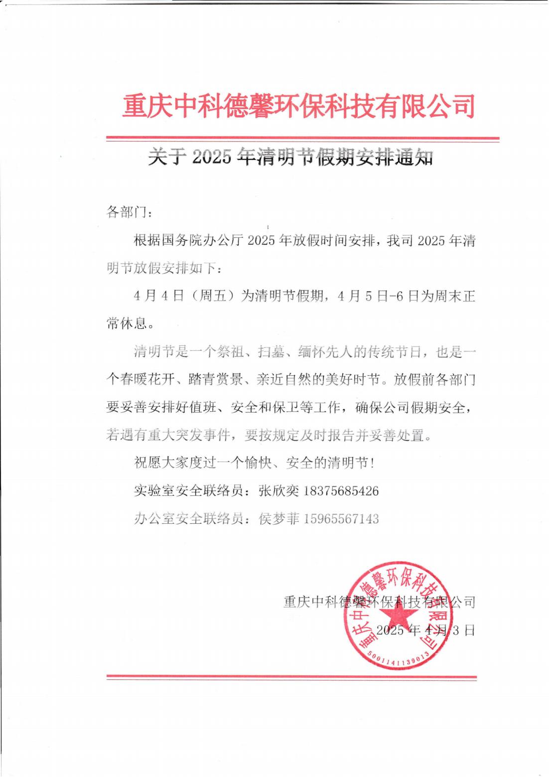 2025年清明節(jié)放假通知