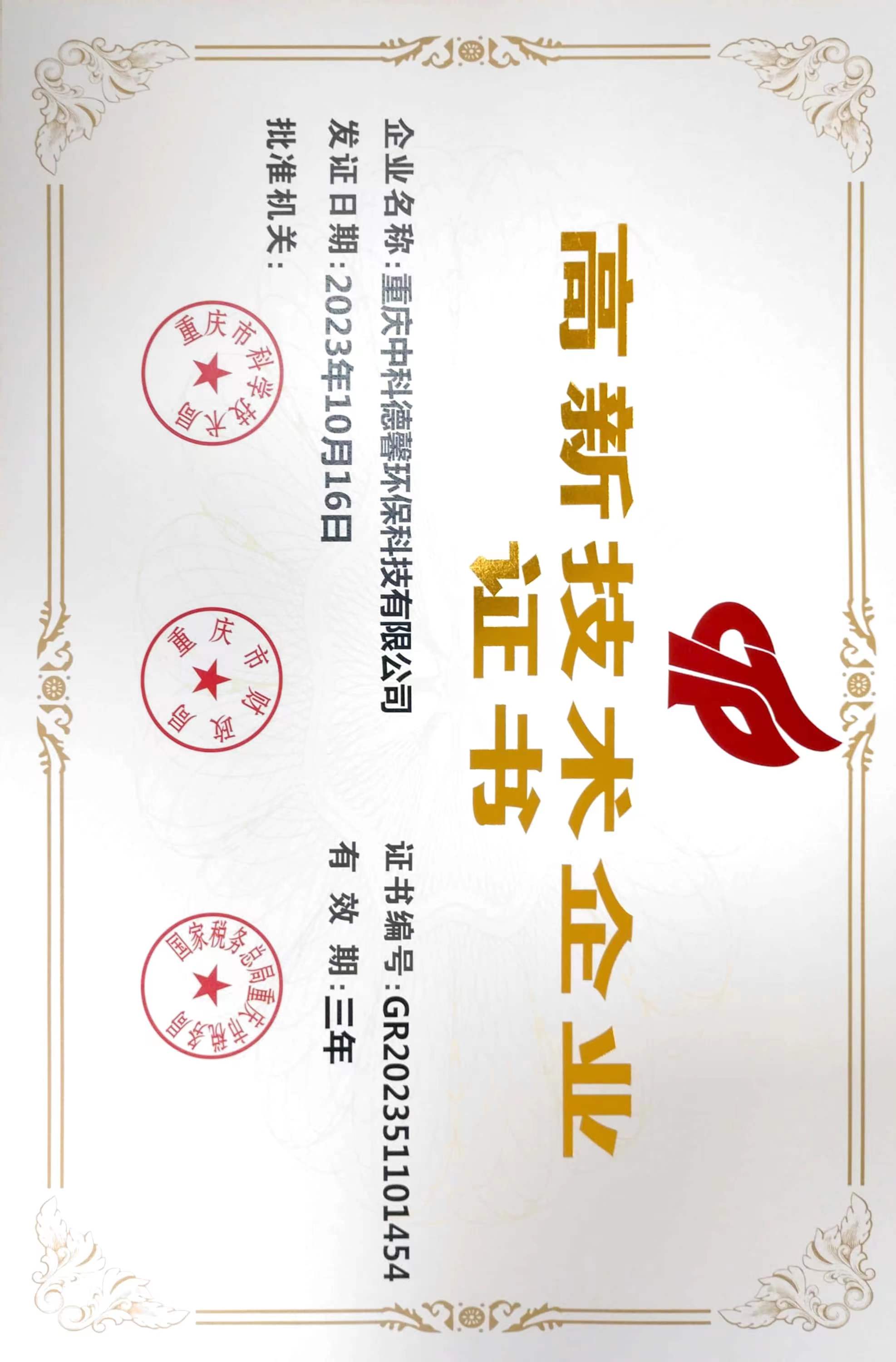 2023年10月16日,我司成功通過“高新技術企業”認定,這表明我司在資源與環境技術成果轉化領域的突出技術優勢與強勁綜合競爭力。今后,公司將繼續踐行創新驅動發展戰略,不忘初心,奮勇向前!