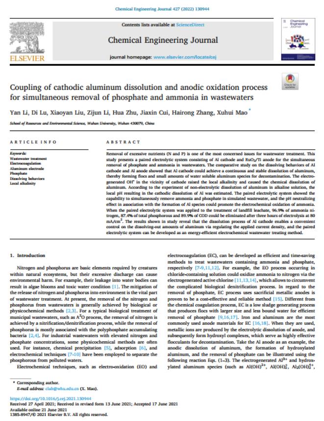 我公司生產的BOD-Q水質測定儀所采集數據在國際期刊《Chemical Engineering Journal》上發表
