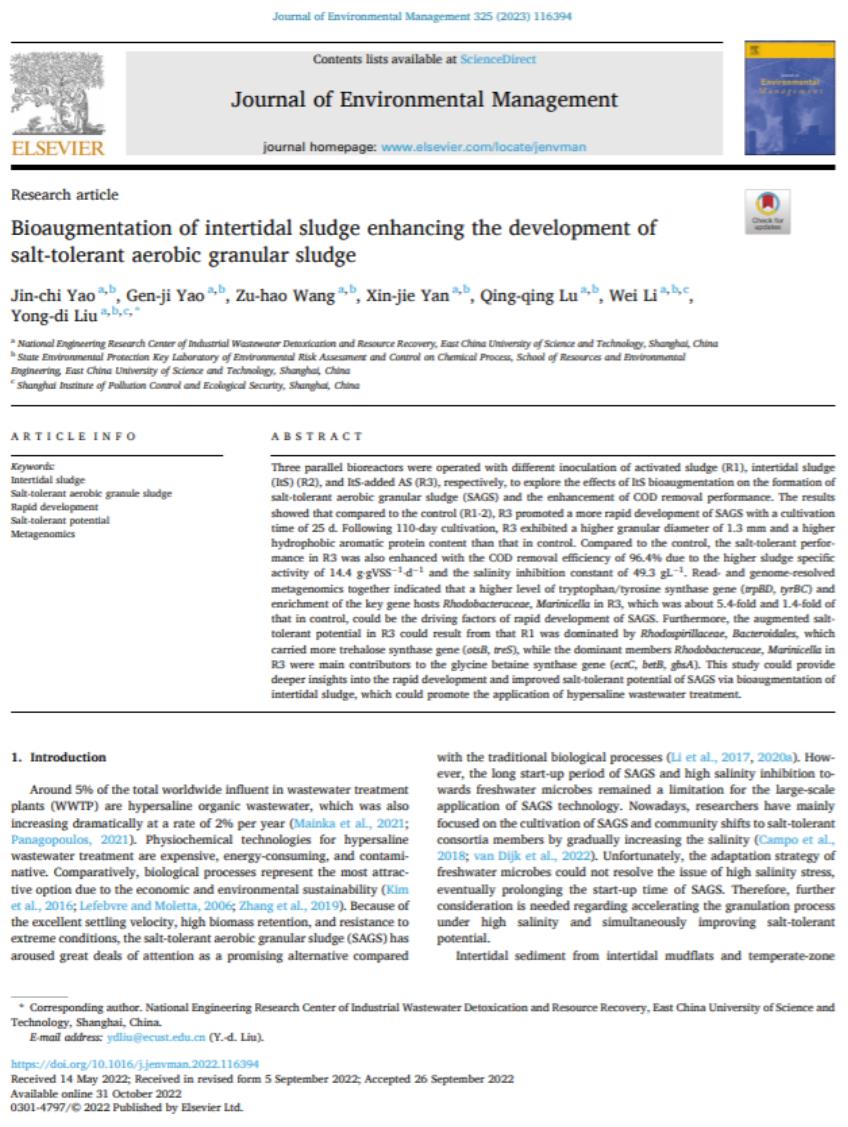 華東理工大學用我公司生產(chǎn)的BOD-Q水質(zhì)測定儀采集的BOD數(shù)據(jù)在國際期刊《Journal of Environmental Management》上發(fā)表題為“Bioaugmentation of intertidal sludge enhancing the development of salt-tolerant aerobic granular sludge”的論文,研究使用我司生產(chǎn)的BOD-Q水質(zhì)測定儀對不同污泥生物反應(yīng)器的BOD進行測定,該論文的發(fā)表標志著我司儀器的測定數(shù)據(jù)具有高度的精準性和可靠性,為今后科研人員了解并使用我司研發(fā)的儀器提供有益的參考。