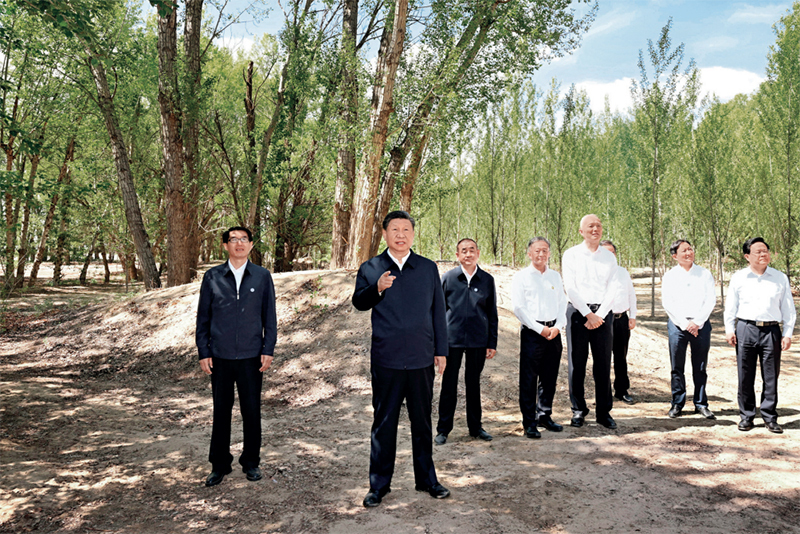 2023年6月5日至6日,中共中央總書記、國家主席、中央軍委主席習近平在內蒙古巴彥淖爾考察,并主持召開加強荒漠化綜合防治和推進“三北”等重點生態工程建設座談會。這是6日上午,習近平在臨河區國營新華林場考察。新華社記者 謝環馳/攝